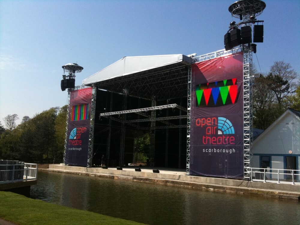 Scarborough open air theatre represents a UK first for a Total Solutions EHD roof system. After winning a competitive tender for a full roof, stage deck system and storage unit for delivery in July 2010 the roof structure was frantically bought forward for an impending visit by the Queen. All the stops were pulled with a fantastic end result.